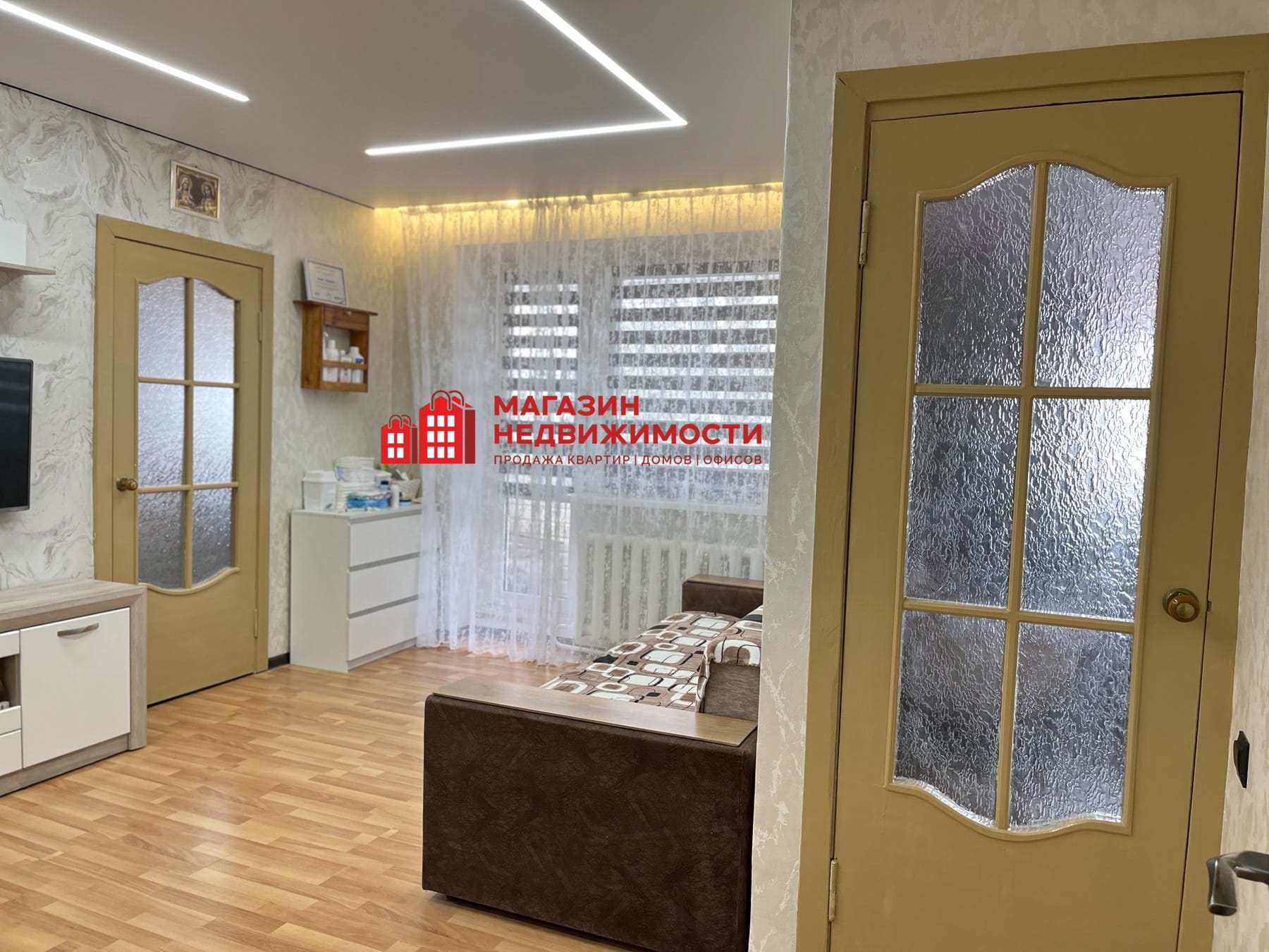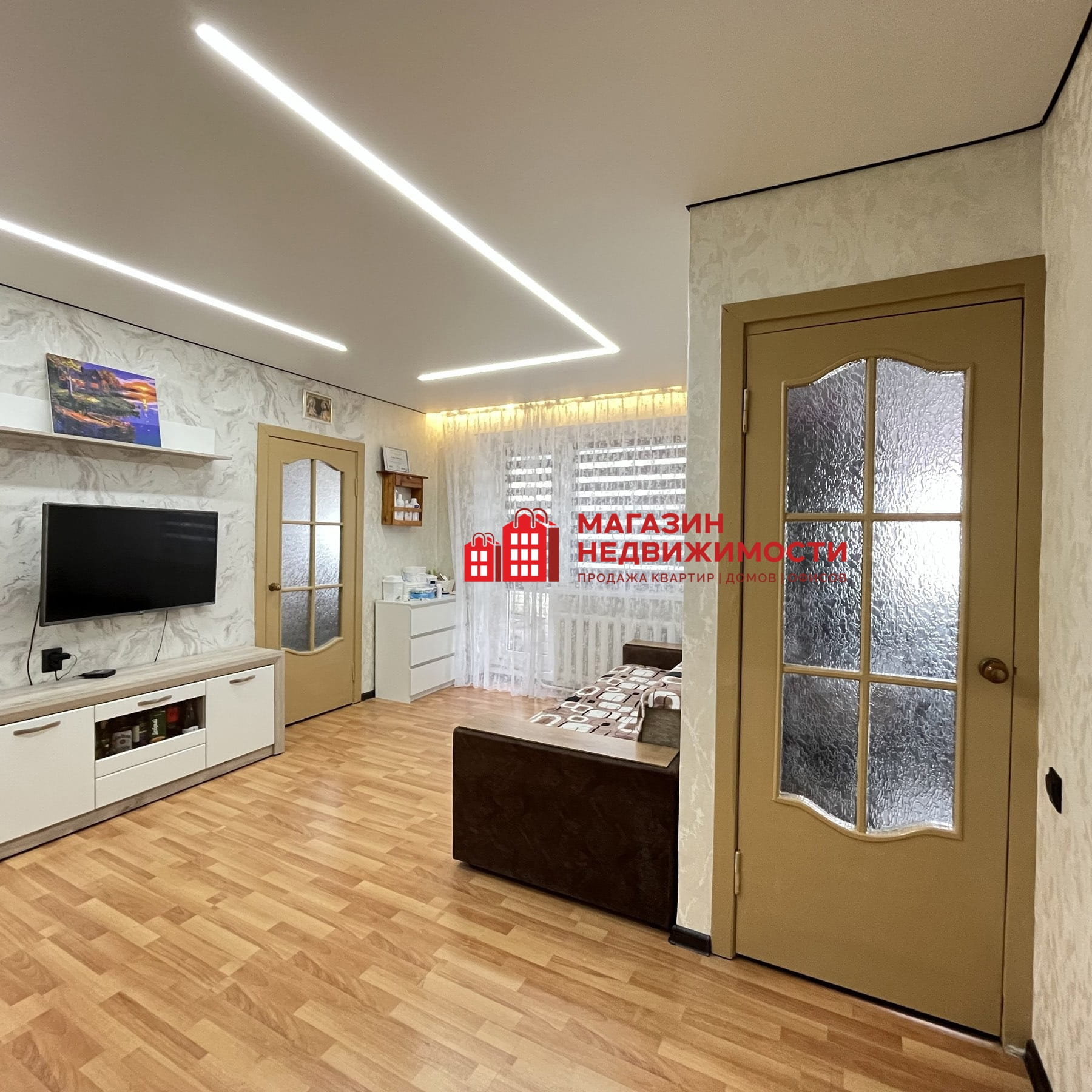 В квартире сделан качественный ремонт . Окна -ПВХ, межкомнатные двери -деревянные, пол в комнатах -ламинат , на кухне и в санузле -плитка. Установлен кондиционер. Сделан большой и вместительный гардероб. Балкон утеплен и остеклен .