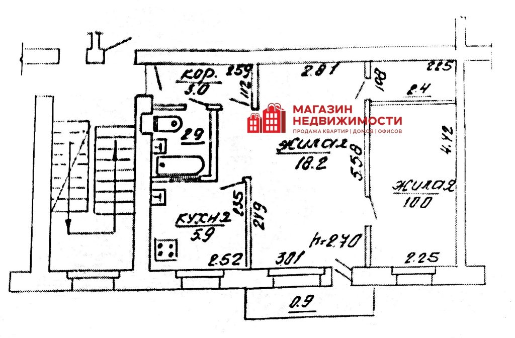 Площадь квартиры 42.4 кв.м площадь кухни 5.9 м.кв ,площадь двух жилых комнат 10.0 и 18.2м.кв