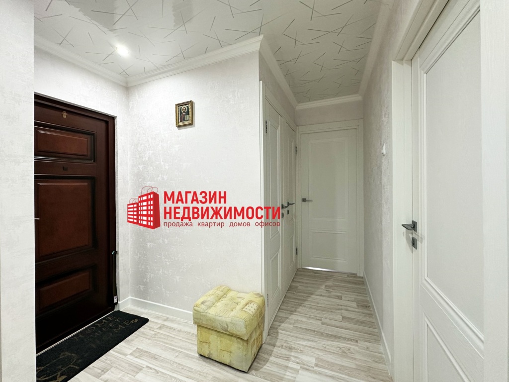 В квартире сделан хороший, светлый ремонт. Входная дверь — металлическая . Окна — ПВХ. Полы — ламинат. Межкомнатные двери — из массива сосны. Стены — обои. Санузел раздельный. Балкон — остеклен . Установлены два кондиционера. Остается встроенная кухня, мебель и техника по договоренности. За квартирой закреплены два подвала.
