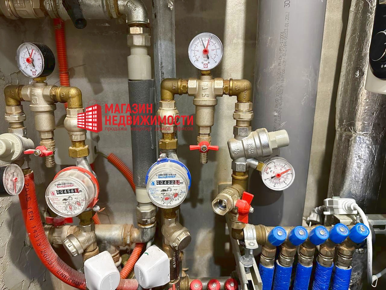 Ввод водоснабжения в квартиру и всего сантехнического оборудования был заменен. Установлены автоматические датчики блокировки на случай протечки, манометры. Установлен бойлер. Так же в спальной комнате выведены все коммуникации для установки кондиционера.