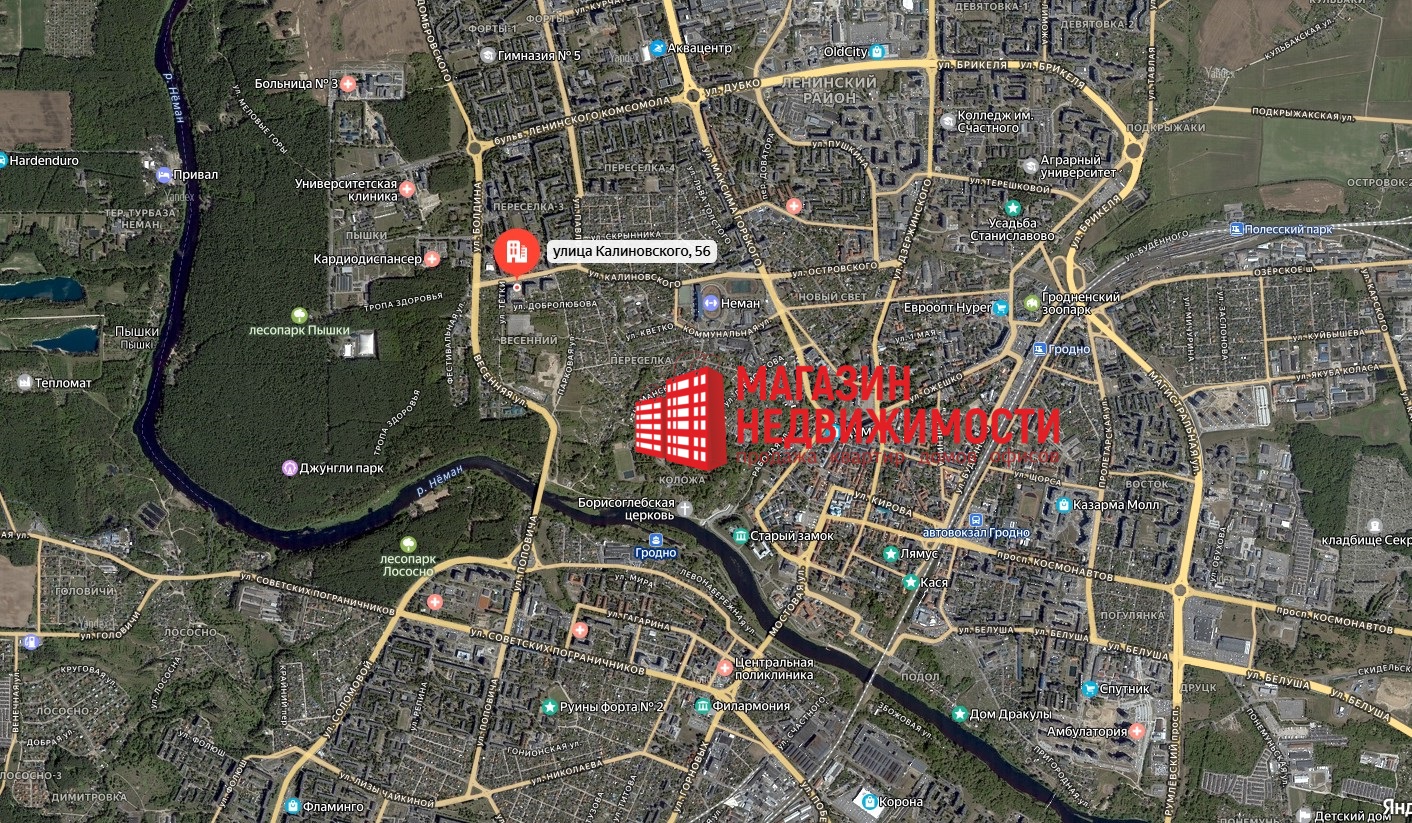 Продаётся трёхкомнатная квартира, в одном из популярных и экологически чистых районов города Гродно, на улице Калиновского, 56 в районе с развитой инфраструктурой. Неподалёку находится лесопарковая зона Пышки и река Неман. Рядом с домом расположены: стоянка для автомобилей с достаточным количеством машиномест , детские сады, школы, медицинский университет и колледж, областная больница, банки, продовольственные магазины, рынок «Корона», ресторан «Золотой Телёнок», ТЦ «Олд Сити», аквацентр, поликлиника, стоматология, аптеки. Есть все что нужно для комфортного проживания. А остановки общественного транспорта позволят без труда и в кротчайшие сроки добраться в любую точку города.