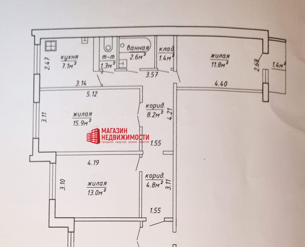 Характеристики квартиры: площадь общая по СНБ – 67,5 кв.м, площадь жилых помещений – 66,1 кв.м, жилая – 40,7 кв.м, кухня – 7,1 кв.м, высота потолка – 2,6 м. Застекленная лоджия – 2,8 кв.м. Кладовая – 1,4 кв.м.