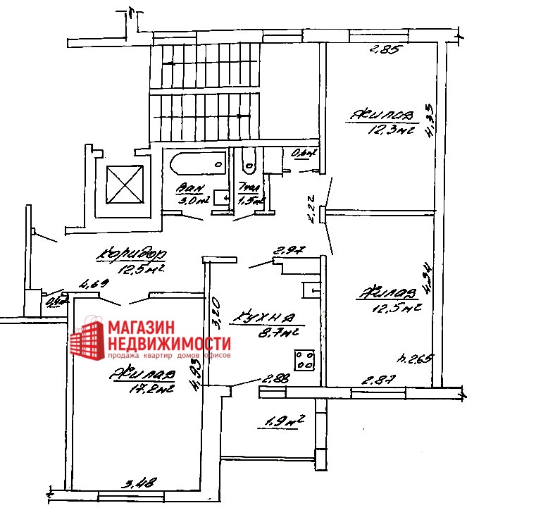 Квартира расположена на 8 этаже 9-этажного панельного дома 1997 года постройки. Общая площадь квартиры – 70,6 м.кв., жилая – 42,0 м.кв., представлена тремя комнатами площадью 17,2 м.кв., 12,5 м.кв., 12,3 м.кв., кухня – 8,7 м.кв. За квартирой закреплены вместительный подвал и ячейка на этаже.