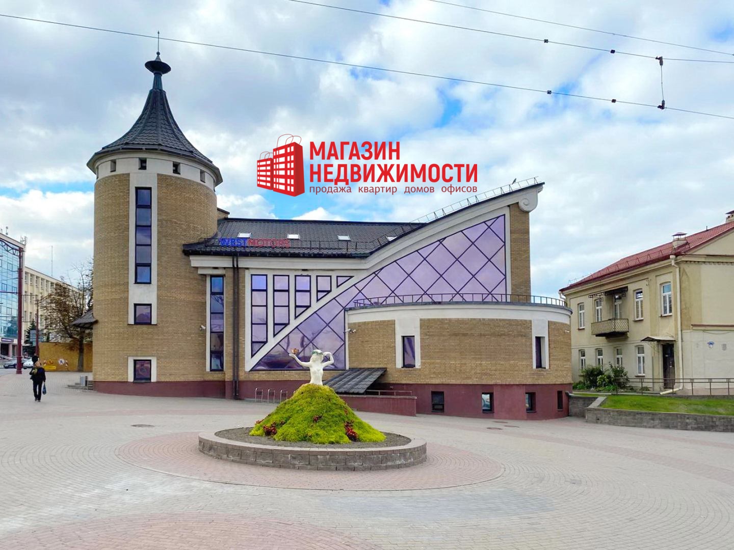 Здание находится в центре города, рядом центральный рынок, автовокзал, исторический центр, автомобильный и пешеходный трафик, одна из самых лучших локаций в городе Гродно.