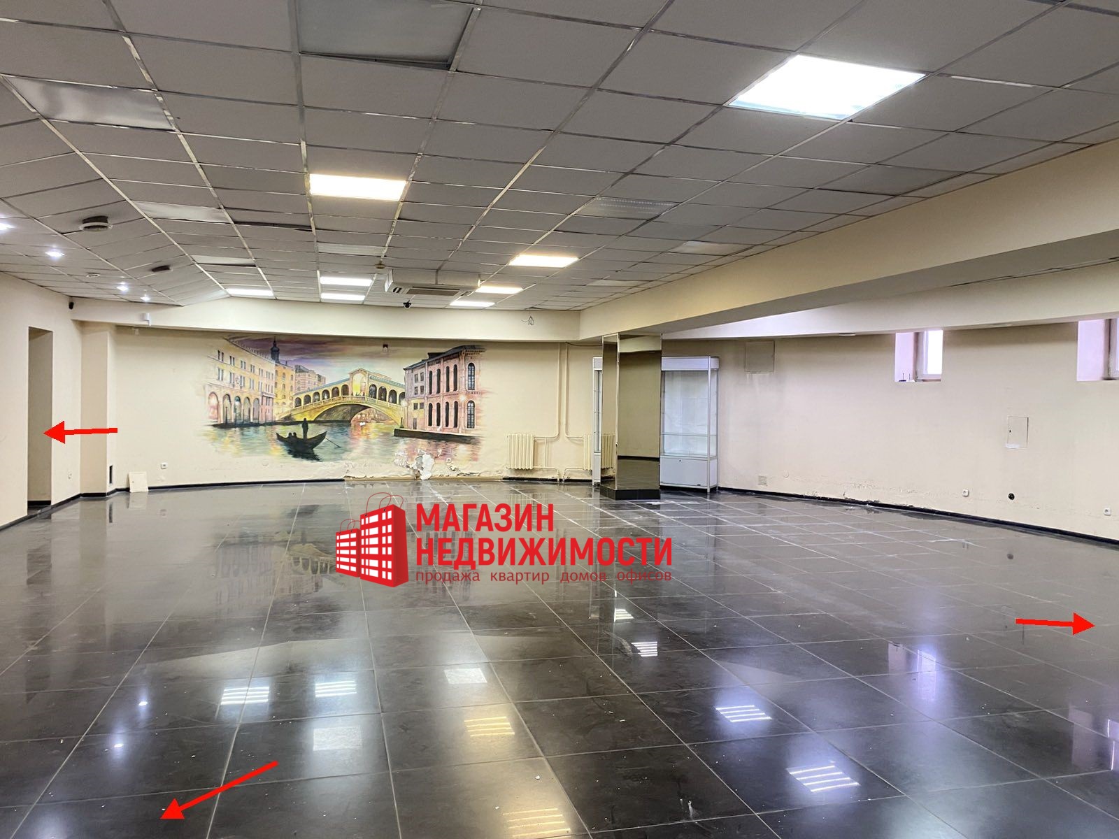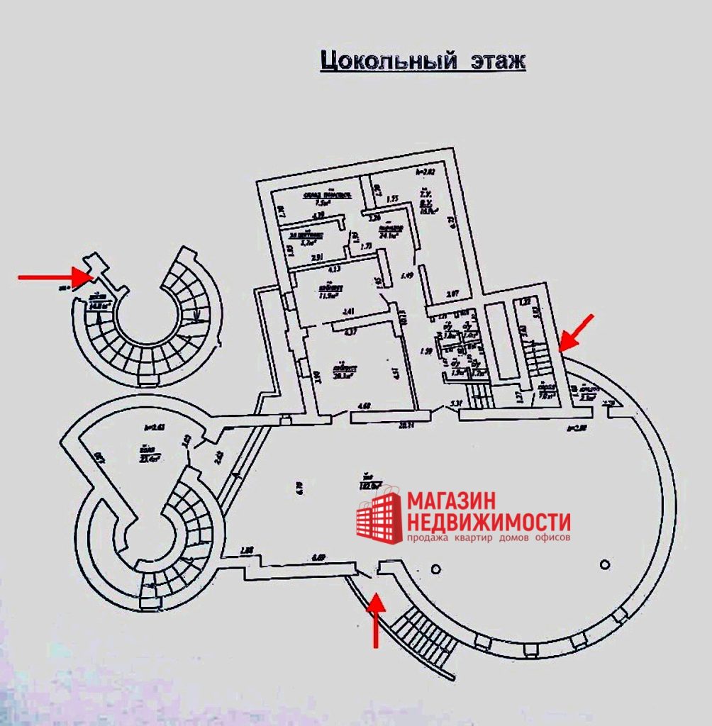 Помещение имеет три отдельных входа с трех сторон здания и представляет собой просторный зал (площадь 182,6 кв.м.) с выходом со стороны автовокзала и со стороны ул. Карла Маркса, парадный вход с винтовой лестницей, два кабинета, и помещения хозяйственного назначения, сан узел. Само помещение находится в цокольном этаже. Отличная планировка позволяет внести изменения.