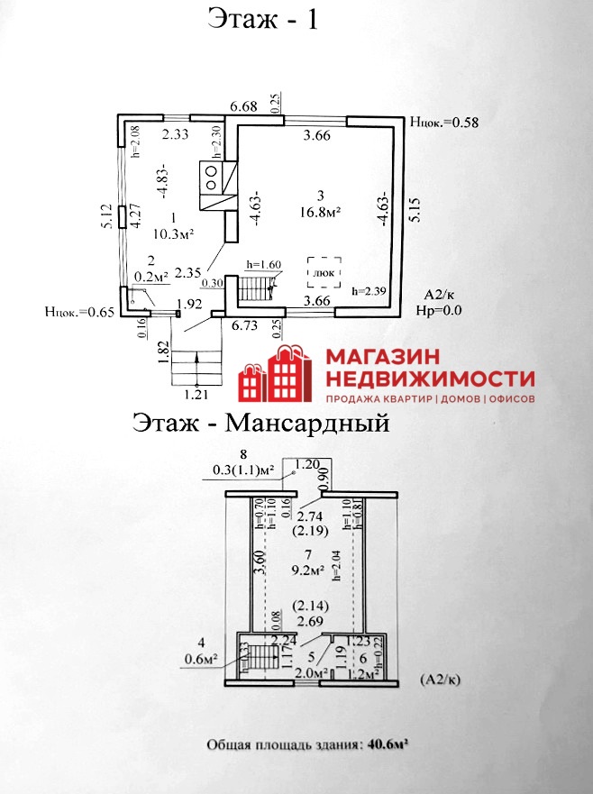 - Площадь общая40,6