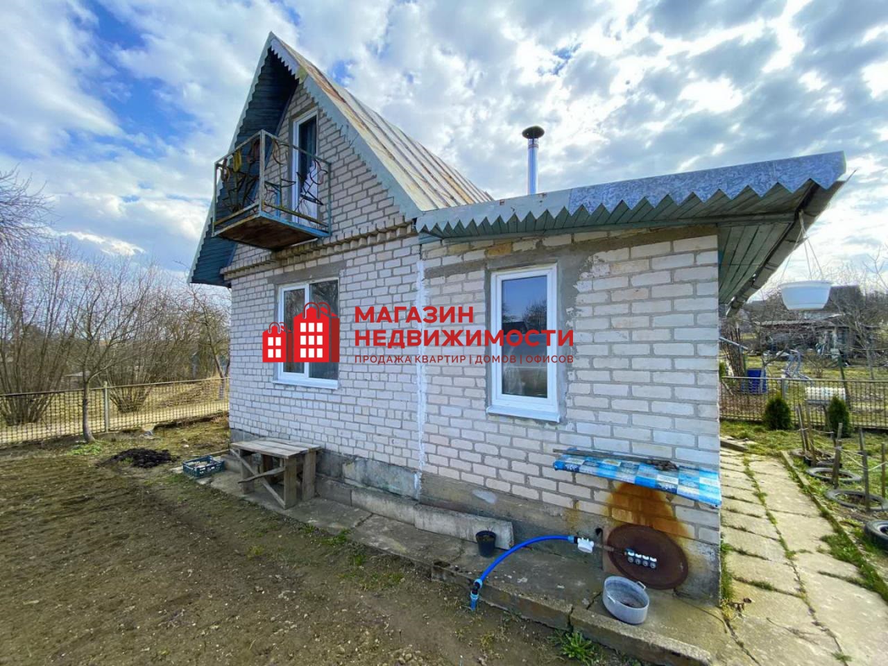 Кирпичный садовый домик построенный в 1987 году. В домике есть жилая комната, кухня и мансарда. Площадь домика 40,6 кв.м., комната 16,8 кв.м., кухня 10,3 кв.м, мансарда 9,2 кв.м. На кухне расположена печь, в комнате есть погреб для хранения овощей. Окна: ПВХ. Электроснабжение.