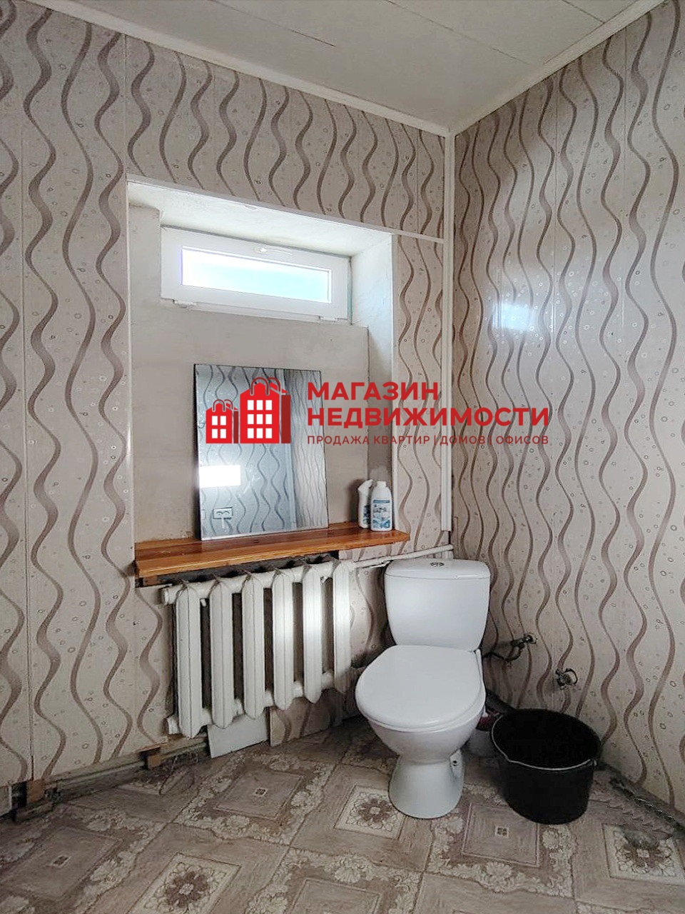 Фундамент — бетон, стены — блоки, крыша — шифер. Санузел — совмещенный. В двух комнатах на полу — ламинат, стены оклеены обоями.