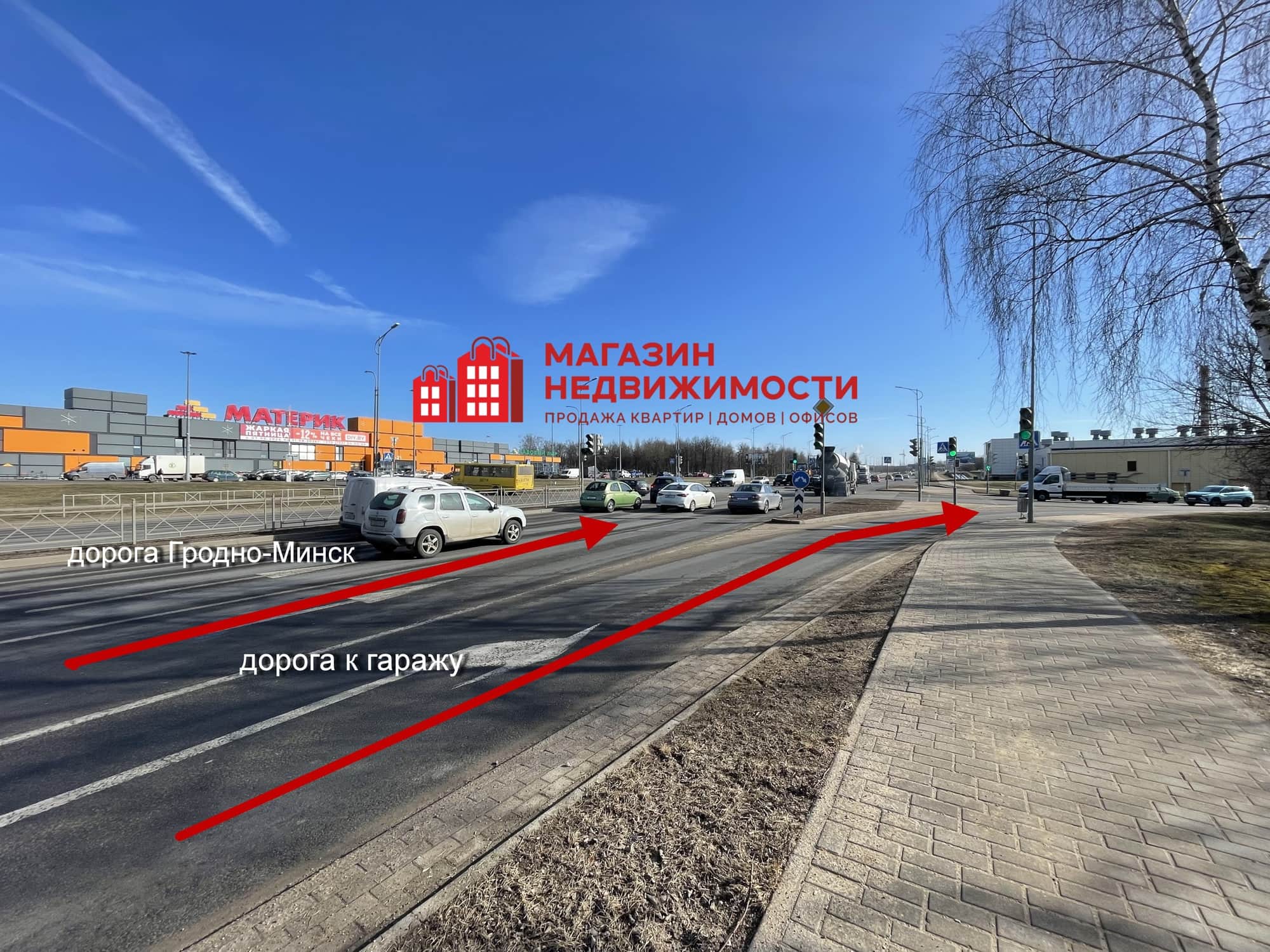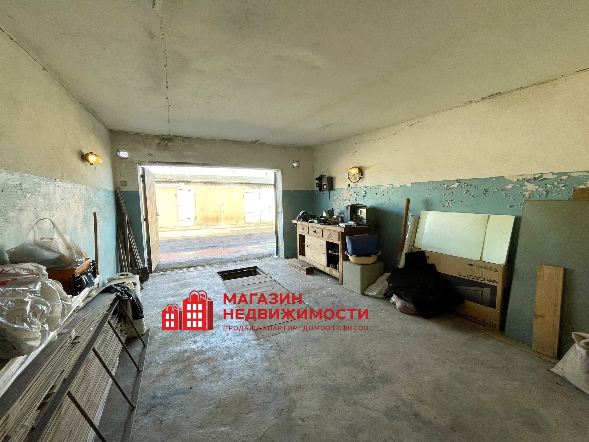 Электричество 220 В, счетчик, розетки и выключатели. Ворота металлические. Отличное расположение: подъезд асфальтирован, рядом СТО, ТЦ «Материк», выезд на трассу М6 Гродно-Минск. Рядом запланировано строительство жилого комплекса «Понемунь».
