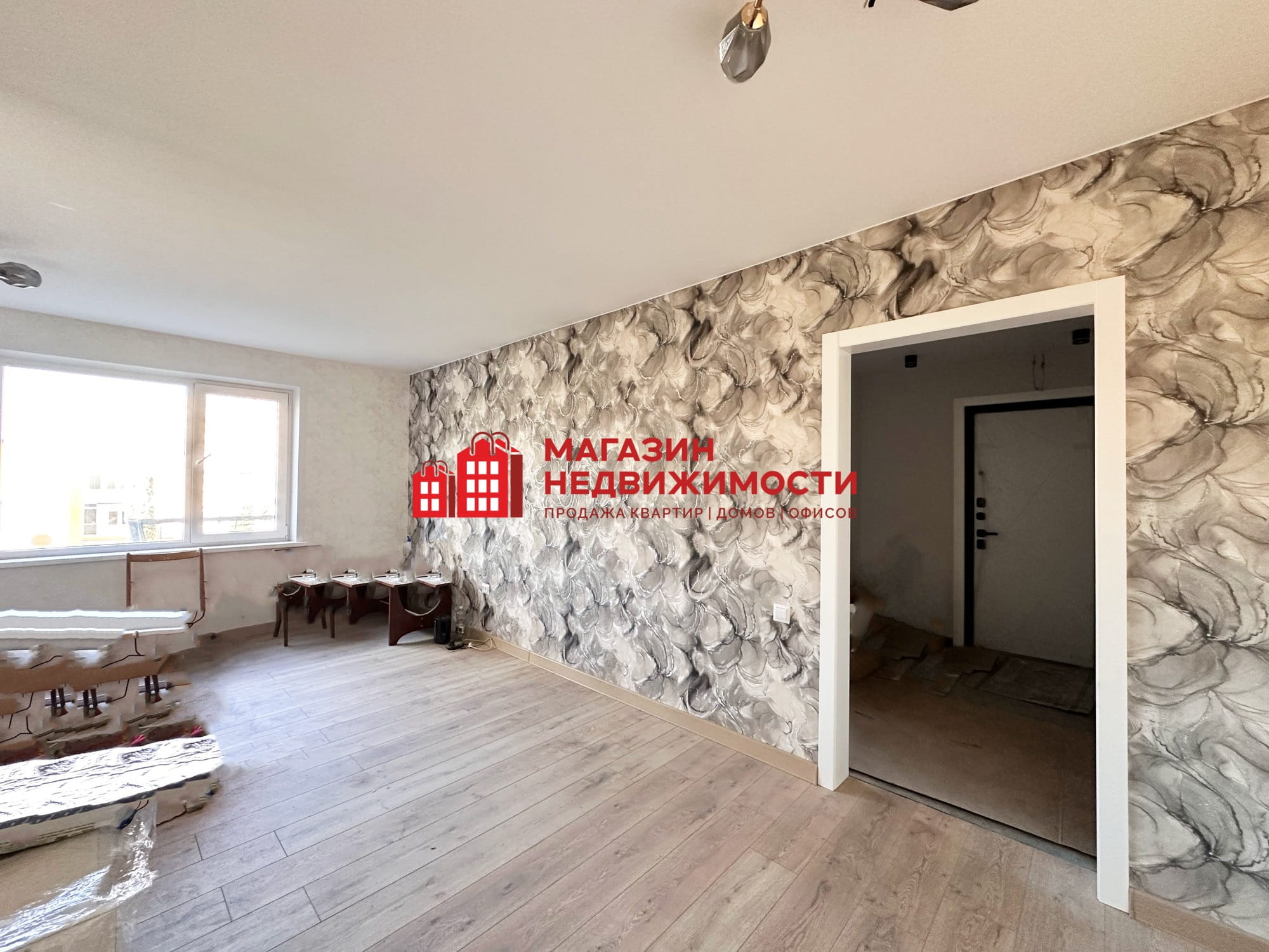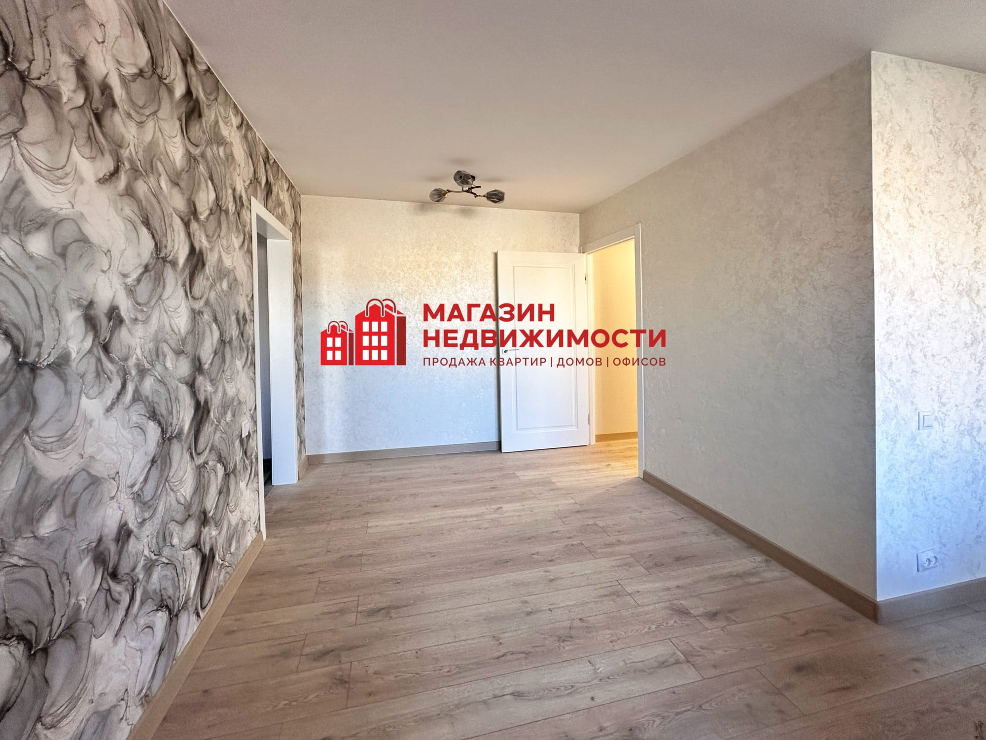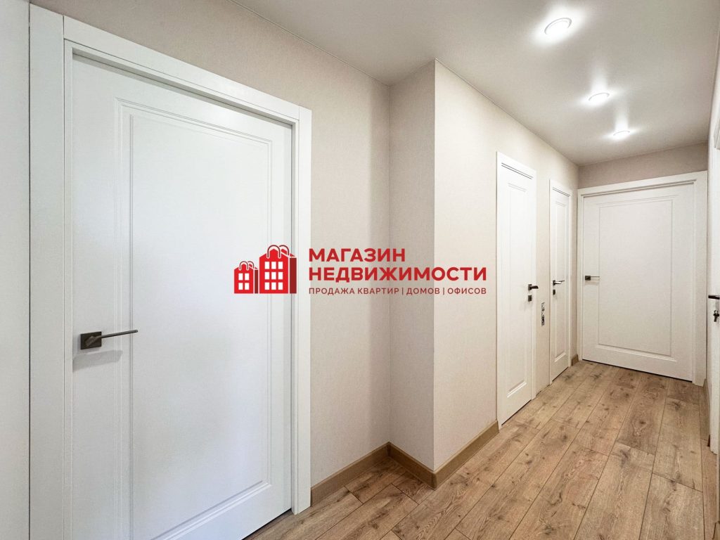 Пространство дополнено хорошим освещением и лаконичным декором. Потолок натяжной. Окна ПВХ. В квартире имеются две лоджии, полностью утеплены. Пол — бесшовный ламинат.