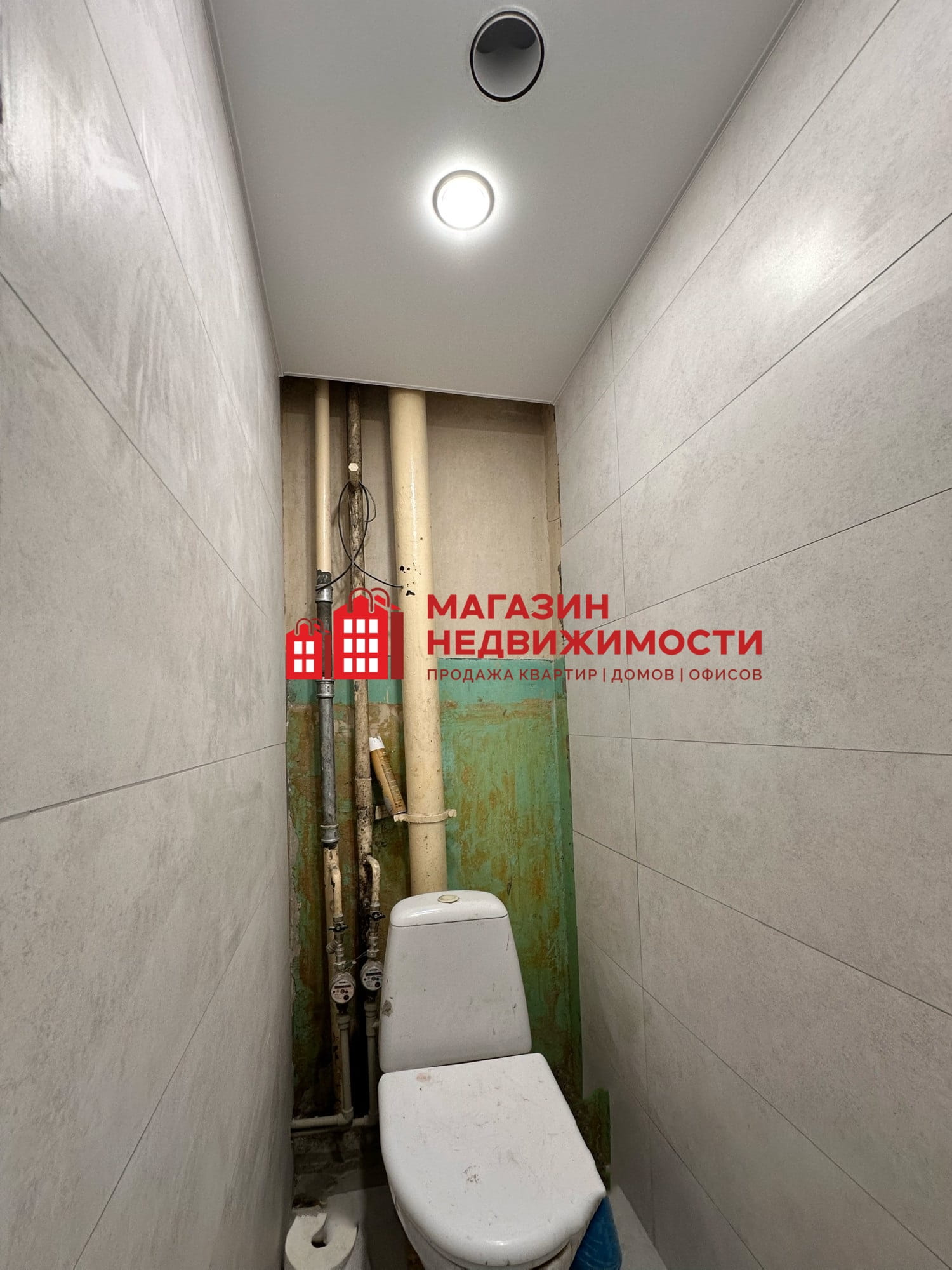 Санузел раздельный, в отделке — керамическая плитка, современная сантехника.