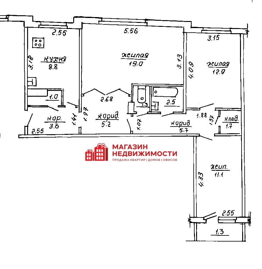 Просторная 3-комнатная квартира в г.Скиделе