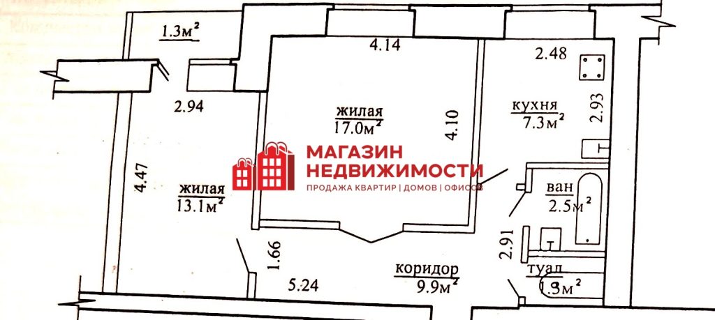 · Комнаты: 2 изолированные комнаты площадью 17 кв. м и 13,1 кв. м.