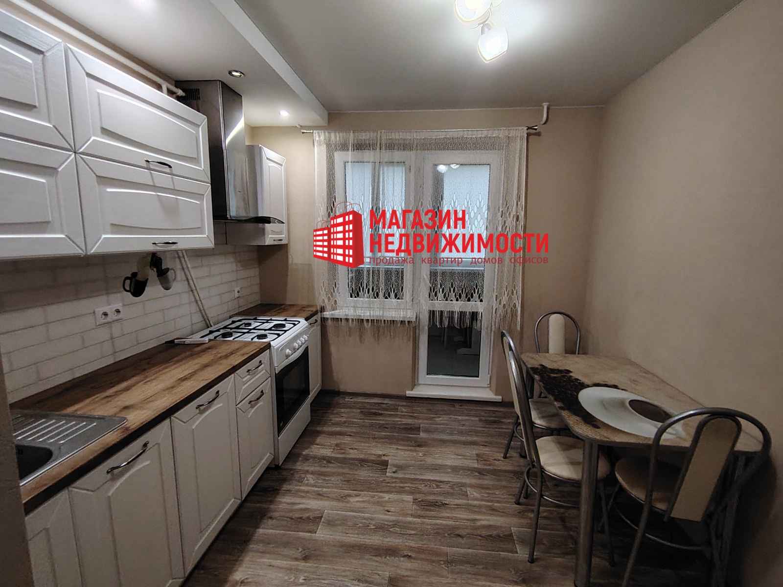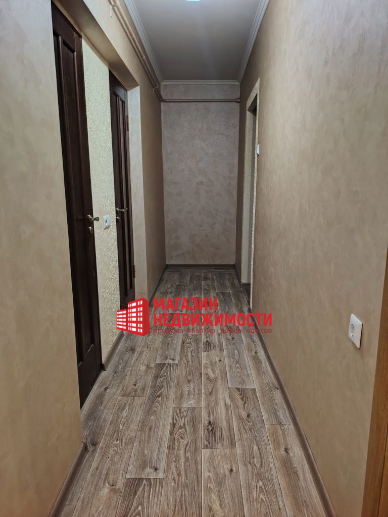 Установлены пластиковые окна. Напольное покрытие: в кухне-линолеум, комнате и коридоре — ламинат/плитка. В туалете и ванной комнате на полу керамическая плитка. Потолок — на кухне натяжной, в комнате и коридоре окрашен.