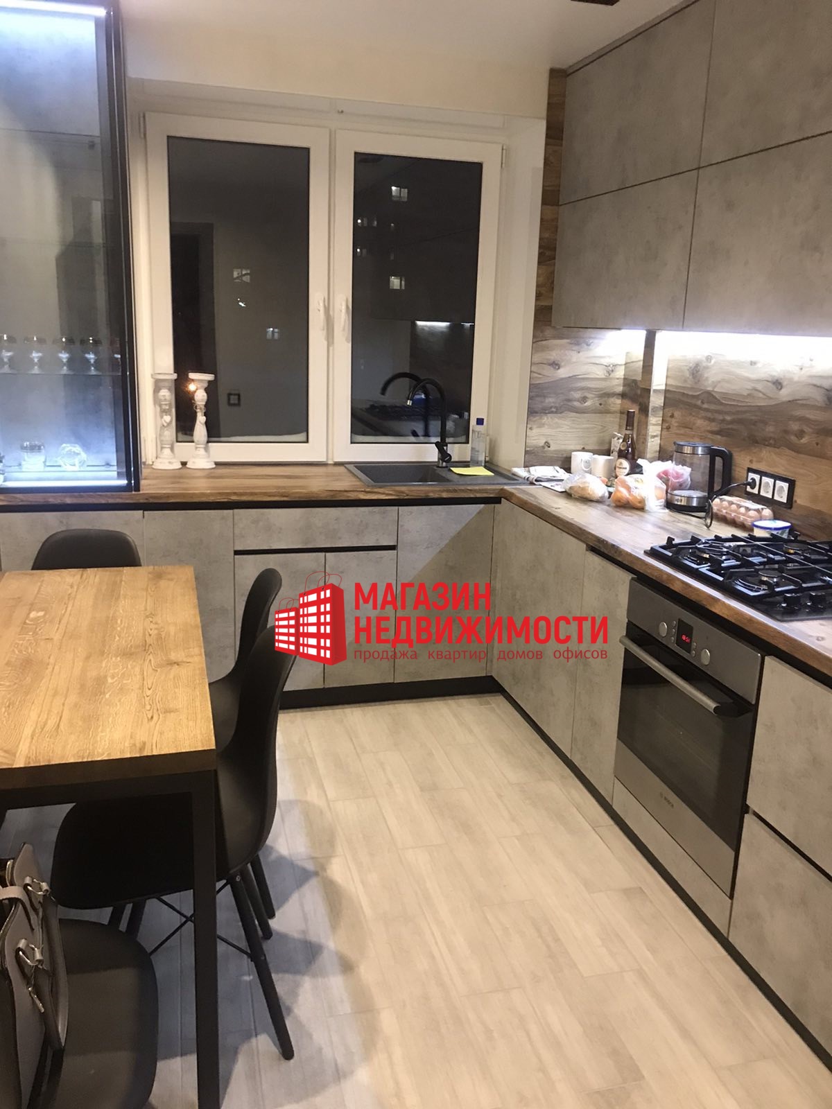 Встроенная кухня с бытовой техникой.